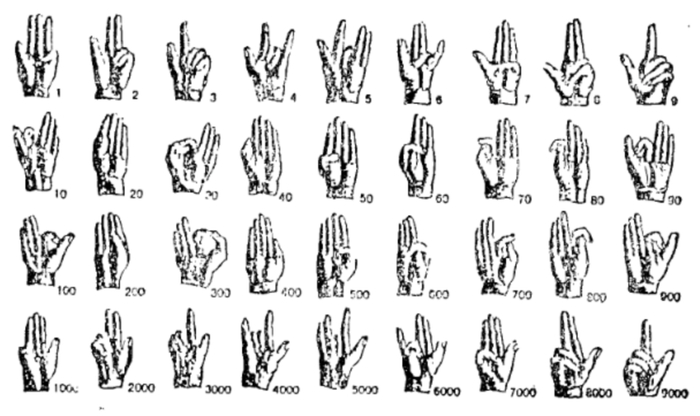 此外,学术界普遍认为,人类最早的记数工具是手。在现在北美洲的地尼丁杰族印第安人中,仍然还保留着手指计数的复杂方式。