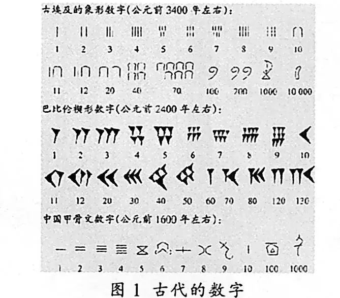 从数字字形来看,5以内的数字字形在世界各地表现出惊人的一致性,无论古代埃及、巴比伦、印度还是中国,均采用累积式的构造,比如中文的“一、二、三”,罗马数字的“Ⅰ、Ⅱ、Ⅲ”。