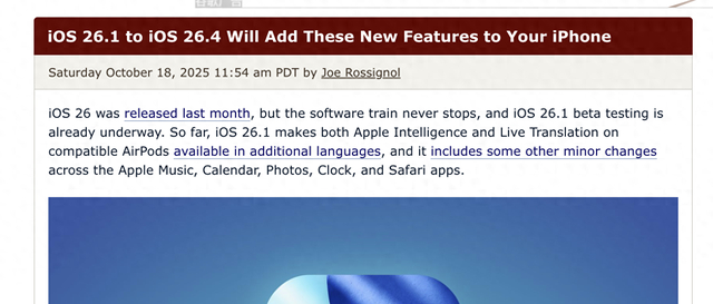 从iOS 26.1测试版到未来的26.4版本,更多功能与改进将陆续上线。以下为目前已知的新增内容,预计在未来一年左右还将有更多更新推出。
